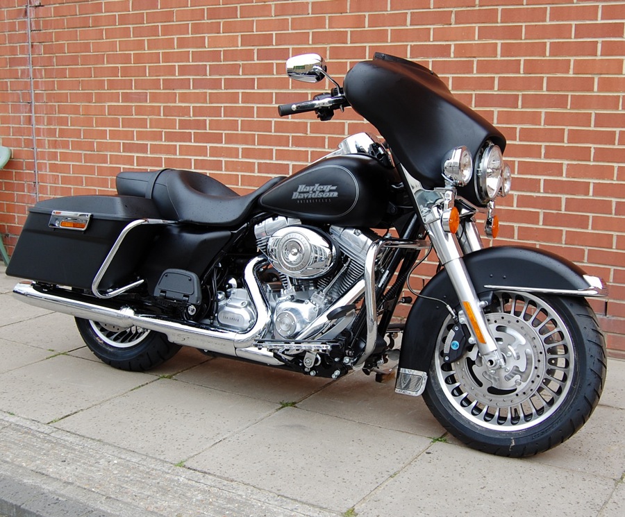 Es ist eine Harley Davidson Electra Glide Standard, Baujahr 2009 in der Farbe Vivid Black.