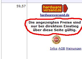 Das is wirklich so ... wenn man über Geizhals rein geht, spart man pro Artikel mindesten 1 Euro.