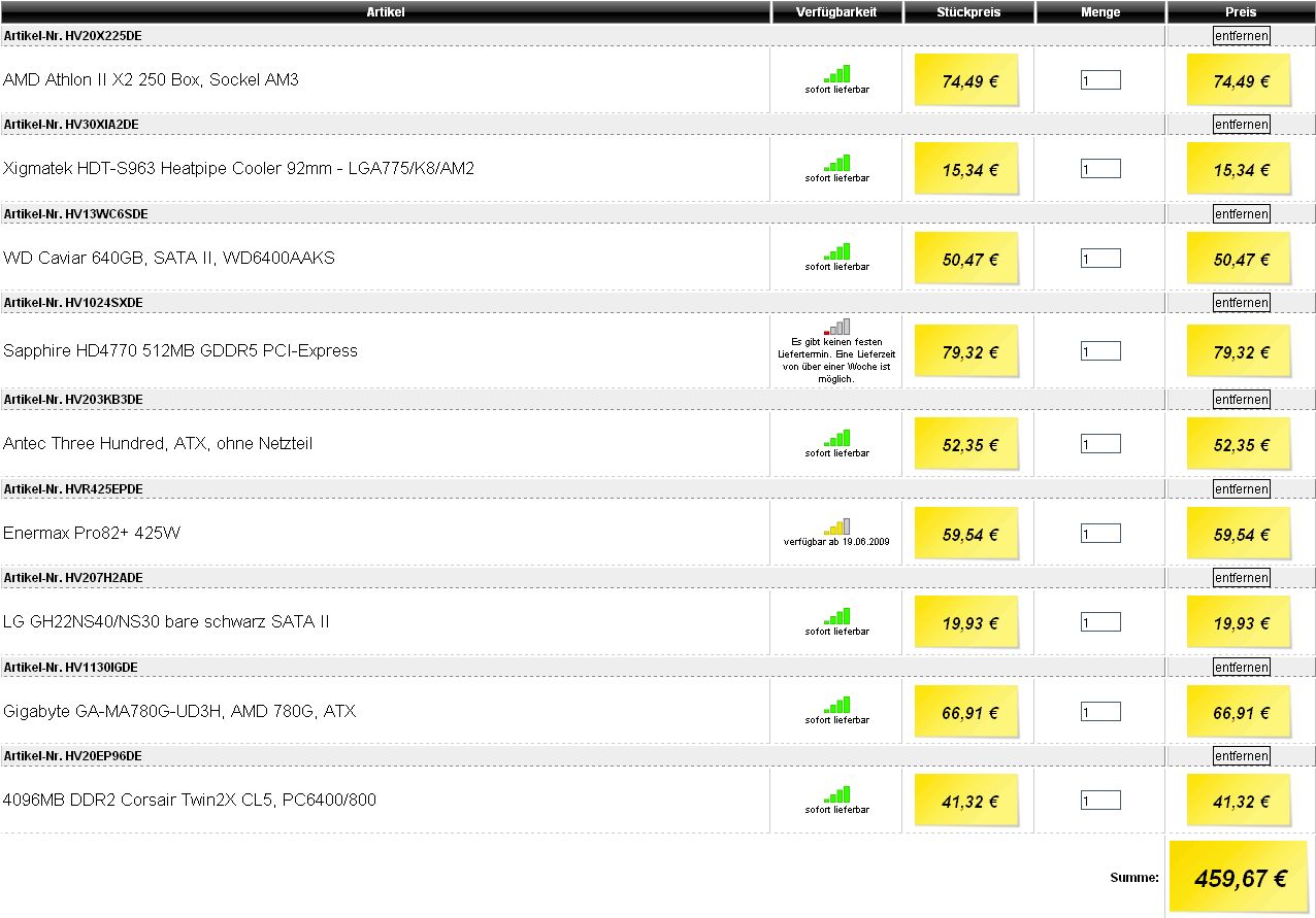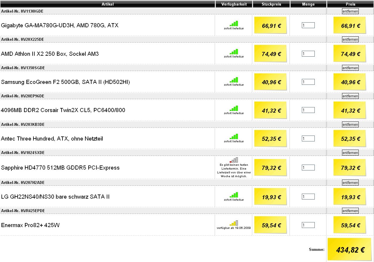 Tausch da einfach noch die 4770 gegen ne 4850 und als Festplatte die Caviar WD6400AAKS (nicht AACS!).