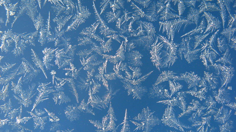 Da die letzten Nächte uns knackige Temperaturen bescherten, bildeten sich ein paar Eisblumen am Fenster