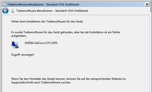 Nachtrag und Edit: Nach dem neuesten Update hat Windows 7 mir nun auch die 1070-Grafikkarte gekillt, bzw. den Treiber. Aktuell wird mir sogar verboten, einen neuen Treiber zu installieren und auch den vorhandenen kaputten Treiber zu deinstallieren.
