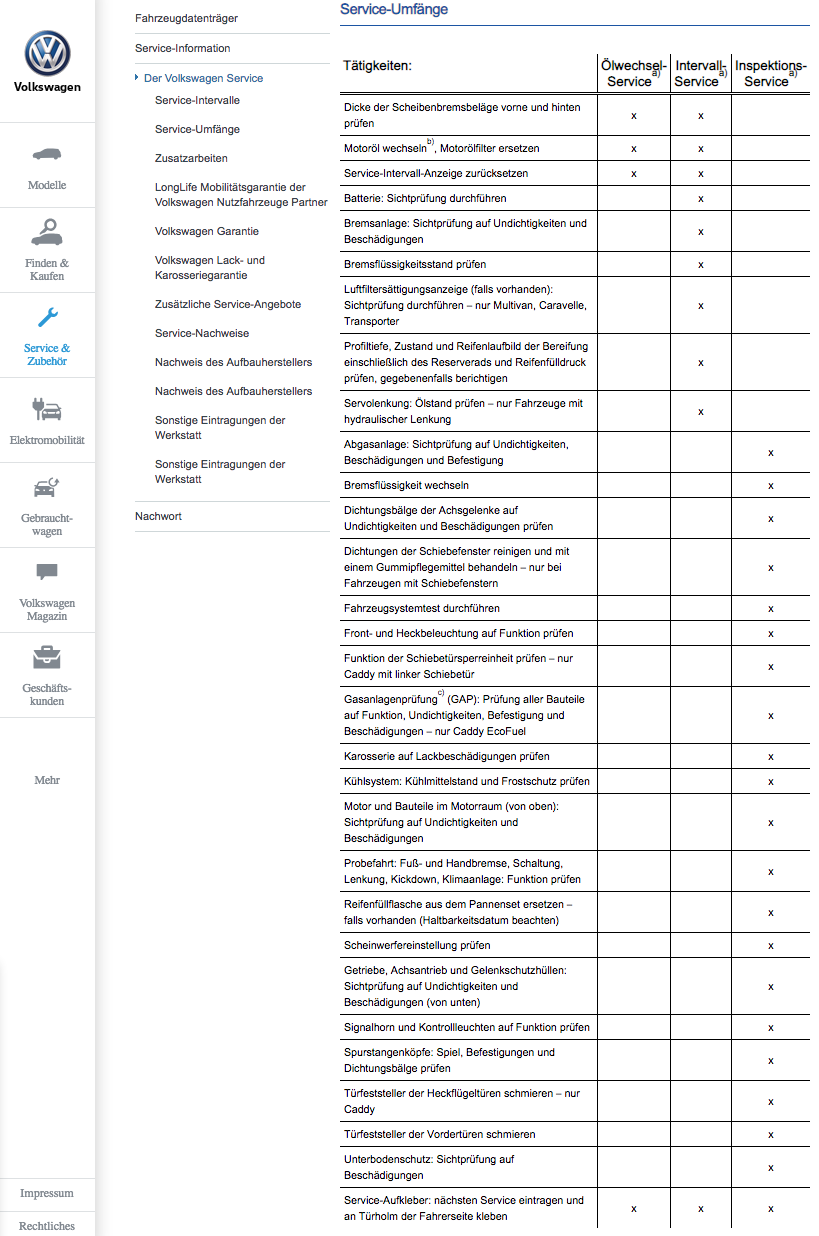Ich habe das Auto 2016 gekauft und einmal "Service" machen lassen. Leider wird mir nicht 100% klar, was der Unterschied zwischen Intervall-Service und Inspektion ist. Hinzu kommen noch "Extra-Services", die in größeren Abständen gemacht werden. Bspw. Zahnriemen.