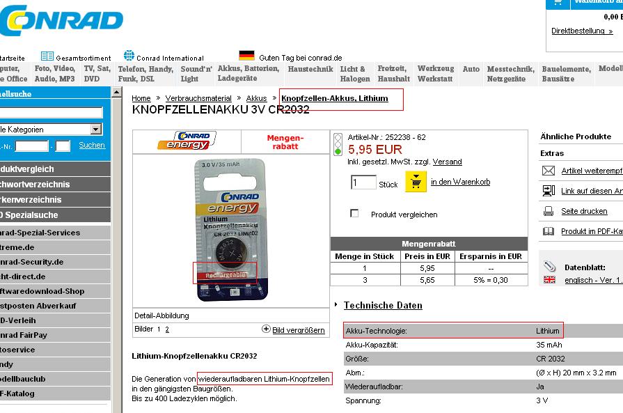 Aber warum steht dann bei Conrad.de, dass die CR2032 ein Akku ist?
