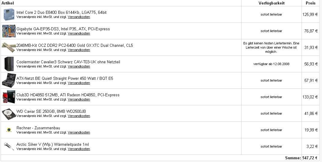 Also RAm und HDD warn Willkür Pur und einen Tip hab ich bekommen, dass ich das mainboard wechseln sollte zu Gigabyte GA-Ep45 DS3, da ähnlicher Preis aber bessere Leistung