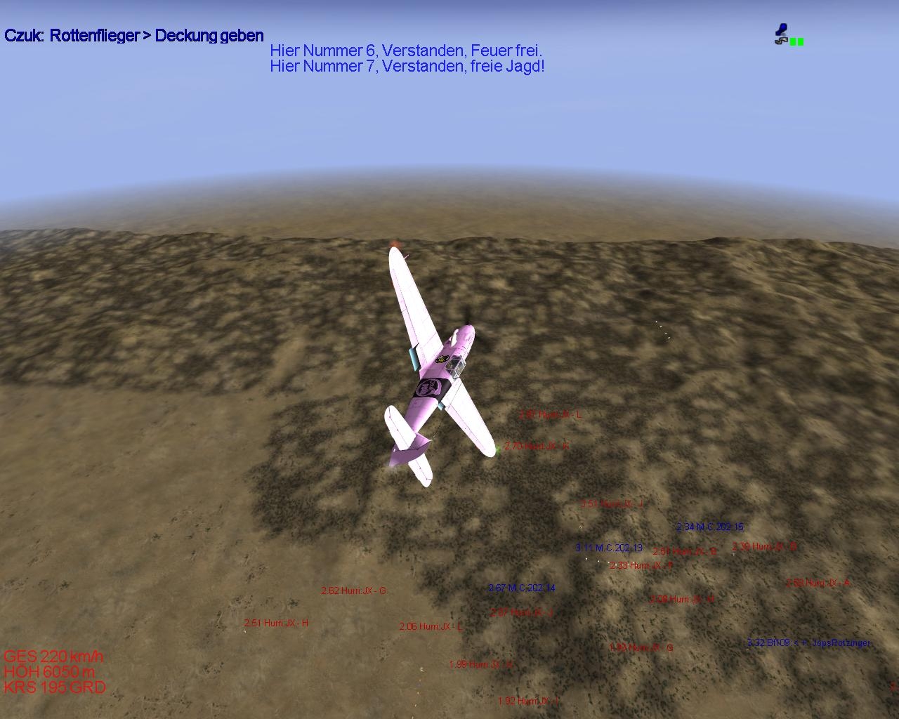 das andere Bild einen Angriff britischer Hurricanes auf eine handvoll Messerschmidt BF109 und ein, zwei italienischen MC202. Ich blieb bewußt weit oben um Höhenvorteil zu nutzen und mir ein Bild davon zu machen, wer hinter wem her ist und wo man geschickt eingreifen kann...