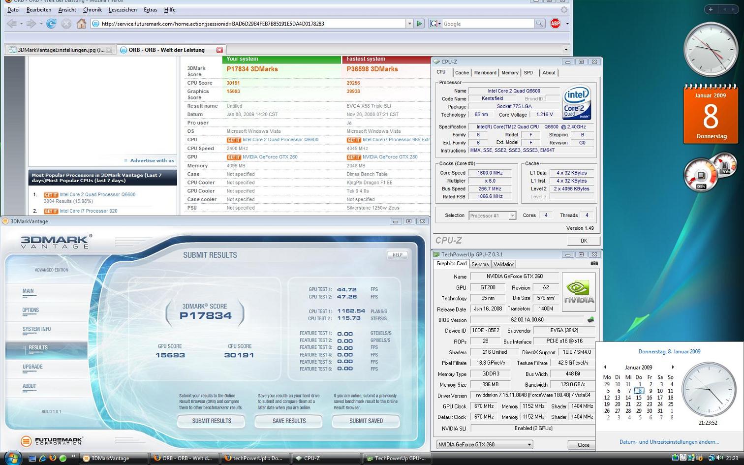1. Da er angeblich einen QX9600@3,6 GHz hat aber nur 14k punkte beim Cpu Test bekommt?? ich habe mit meinem Normal getakteten Q9300@2,5Ghz schon 27k punkte bekommen.