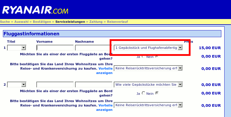 Ryanair - Gepäckstück kostet Extra?