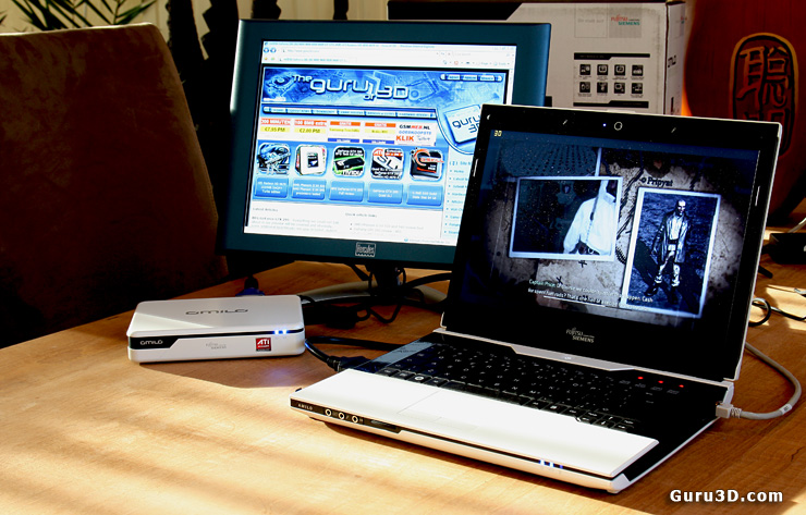 Die englischsprachige Hardware-Site guru3d.com haben den Amilo Graphic Booster betestet. Hierbei handelt es sich um eine externe Grafiklösung für Notebooks, um die 3D-Leistung zu steigern. Somit ist man in der Lage, ohne größe Eingriffe am Notebook eine Grafiklösung basierend auf dem Mobility Radeon HD 3870 Grafikchip einzusetzen. Hierbei handelt es sich letztendlich um eine Zwei-Grafikchip-Lösung: der interne Onboard- und der externe Grafikchip. Leider haben einige 3D-Spiele Probleme mit dieser besonderen Dual-GPU-Variante.