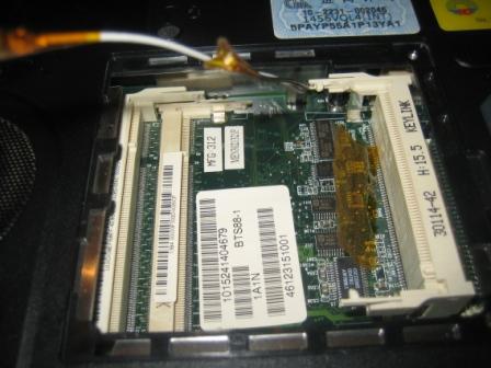 zu deinem eigendlichen Problem kann ich dir nicht wirklich helfen, diese Kabel dort allerdings sind nichts weiter als die beiden Antennenkabel für eine WLAN-Karte (die man in den miniPCI-Steckplatz einsetzen würde der bei dir gerade leer ist). Sie haben mit deinem Problem also nichts zu tun.