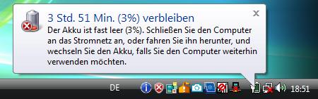 Oh je, nur noch 3:50 Stunden bis der Akku alle ist. Schnell wechseln!
