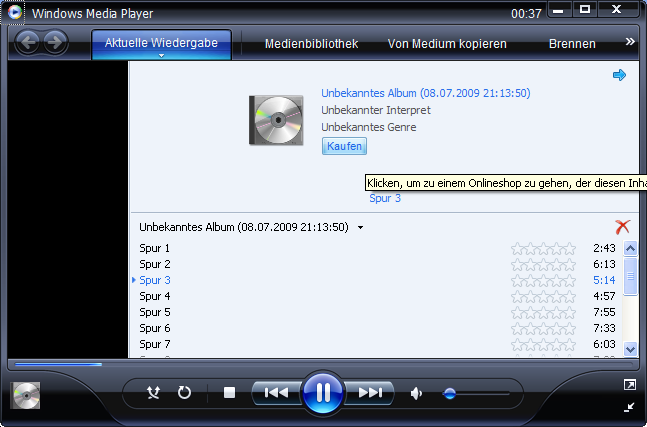 Hier mein MediaPlayer, der mir anbietet, ein unbekanntes Album im Online Shop zu kaufen :crazy:
