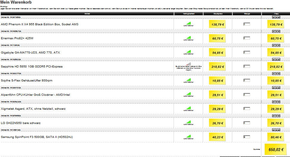 Mal sehen, wann die 5850 ankommt, die haben momentan Lieferengpässe...