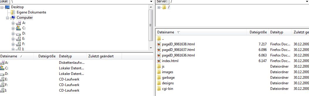 Separat habe ich auf dem FTP eine Textdatei hochgeladen. Da gabs einen Ordner namens cgi bin. In den hab ichs reinkopiert, aber es wurde nichts angezeigt auf der Website. Dann hatte ich testhalber andere Ordner erstellt, mal den cgi bin gelöscht, aber hatte sich nix verändert. Die Dateien lagern auf dem Webspace, nur ich kann sie im Browser nicht sehen....