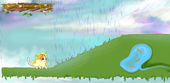 Raincat ist ein Knobelspiel, bei dem man eine kleine, süße Miezekatze durch einige gefährliche Welten führen muss. Gefährlich bedeutet beispielsweise, dass plötzlich ein Schauer auftreten und unser Miezekätzchen nass machen kann. Der Spieler, bestückt mit zahlreichen Utensilien, kann in diesem Fall mit einem Regenschirm aushelfen. Viele unterschiedliche Hindernisse müssen überwunden werden, um die Miezekatze in das Ziel zu führen.