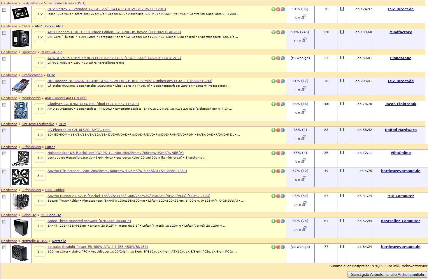 Bekommt man die Teile evtl. noch günstiger? Big Tower Gehäuse ist, glaube ich, schon der niedrigste Preis übers Internet.
