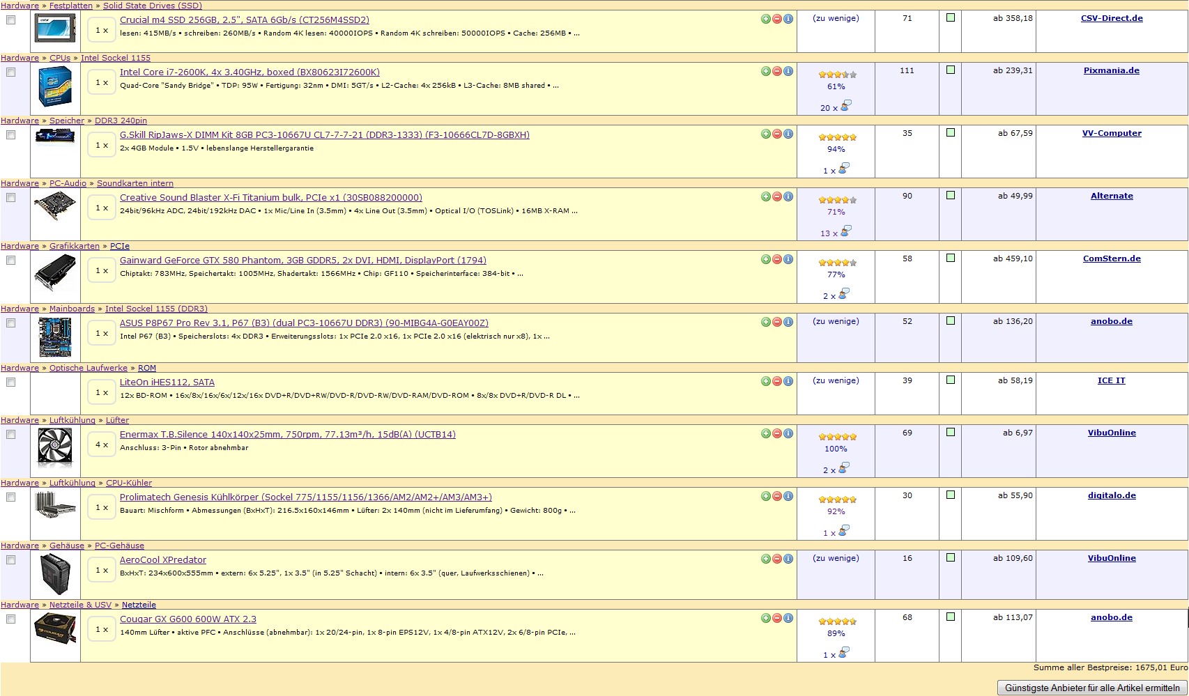 Ich dachte mir einfach dass die Spannungswandler auch etwas Kühlung vertragen könnten wenn die CPU auf 5GHz läuft. Das Netzteil ist derzeit eines der effizientesten und das Gehäuse finde ich persönlich einfach nur "geil". Aber die Geschmäcker sind ja verschieden.Andy_20 hat geschrieben:Bis auf die letzten 3 Sachen würde ich das auch so nehmen.
