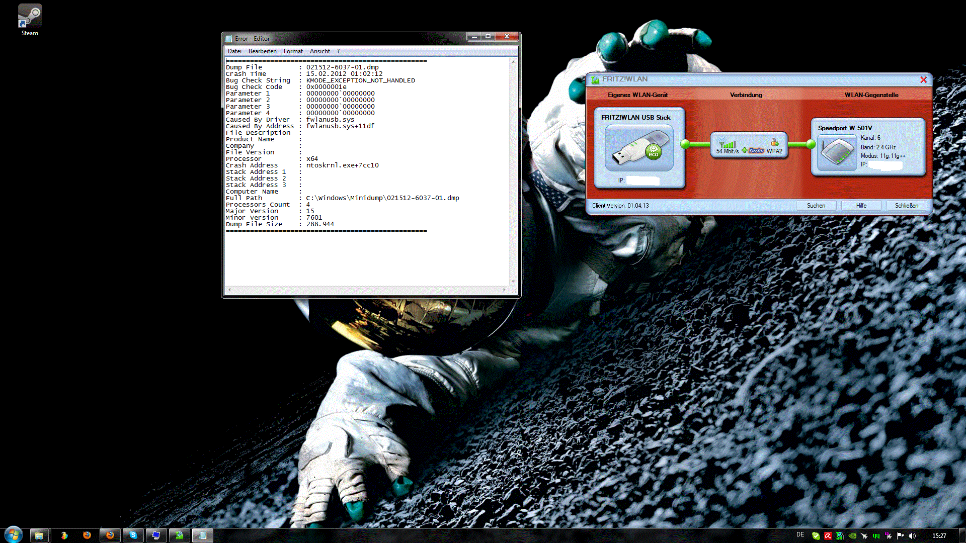 ...ja ich hab von Fritz den standart Stick für 30 euro oder so ca....zeigt auch meistens wlan.sys oder usb.sys feher an benn bluescreen kommt!!vielen dank schon mal
