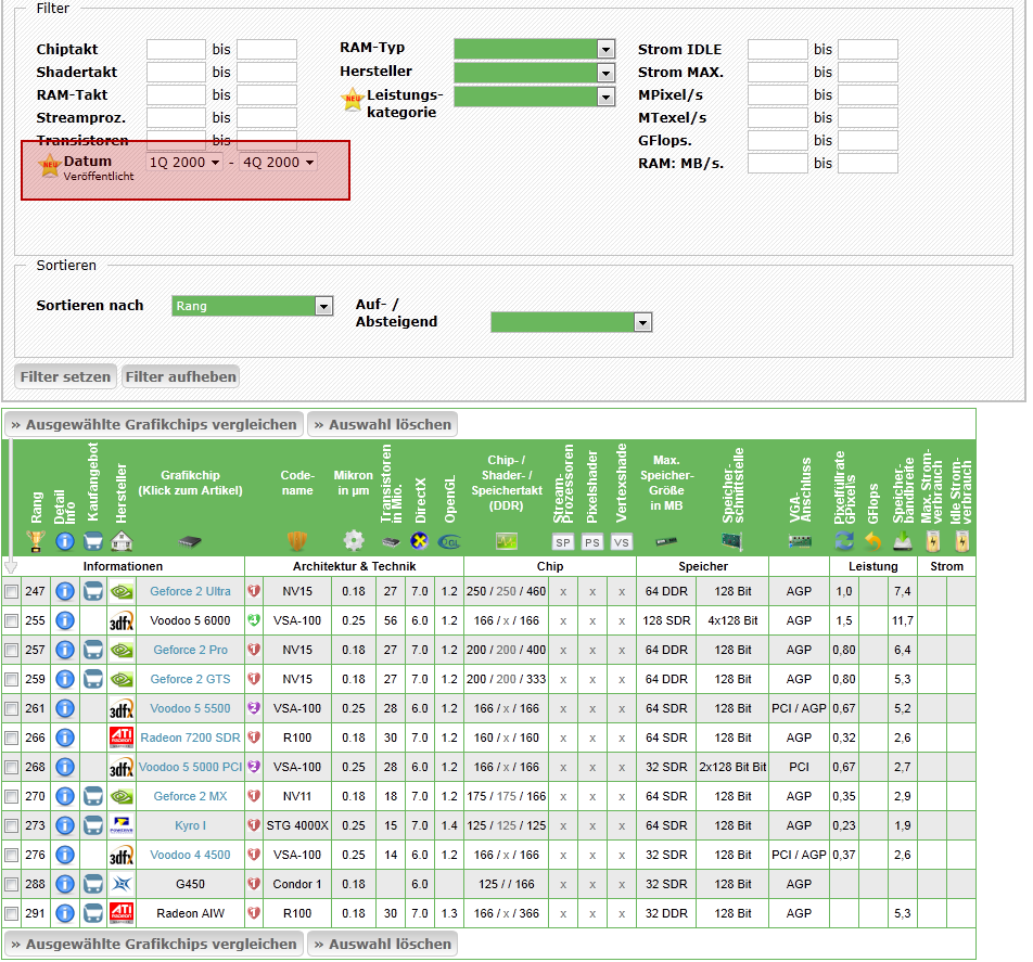 Grafikchip-Rangliste: Erweiterung des Filters (Datum)
