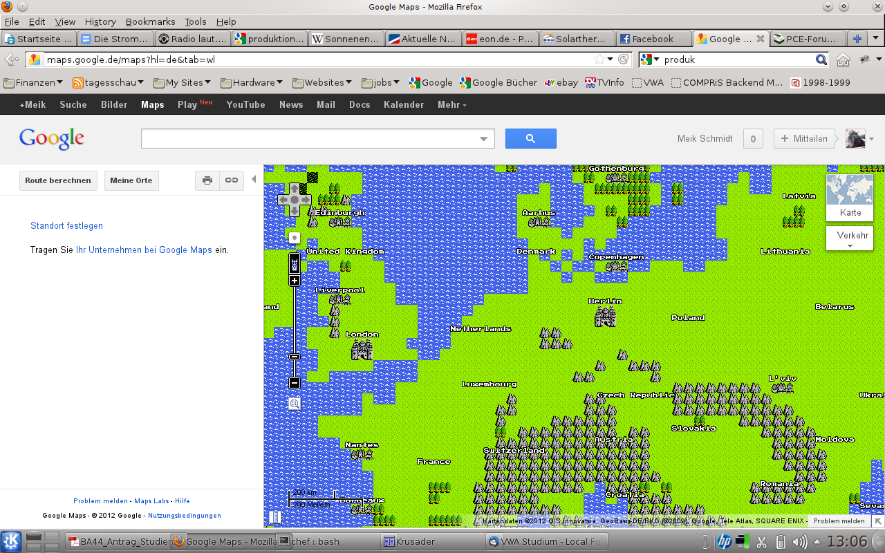 Google hat sich ein nettes Feature für heute einfallen lassen. In Google Maps gibt es eine 8Bit-Tour, wo alles in 8 Bit dargestellt wird. Auch Sehenswürdigkeiten.