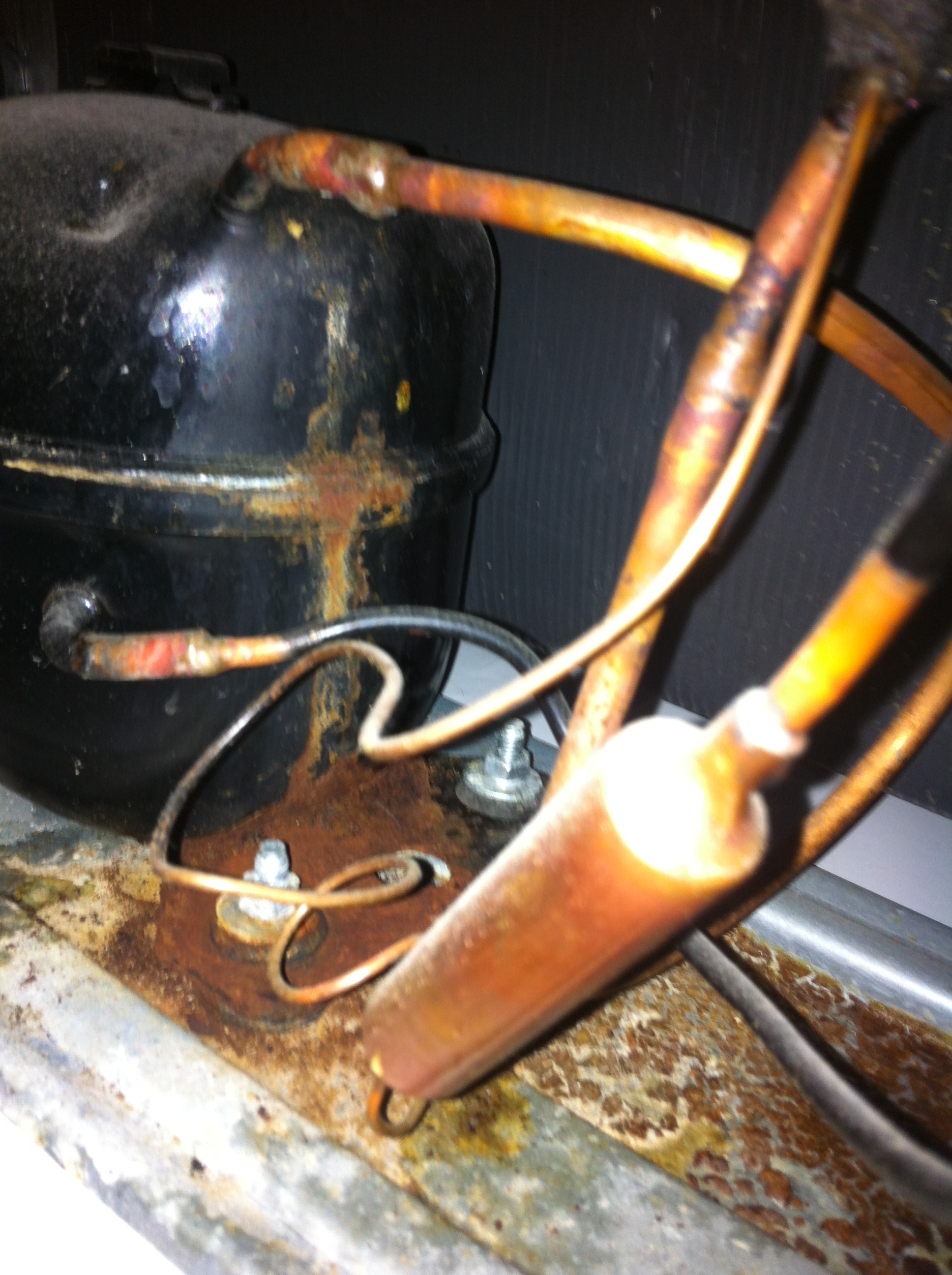 Sieht aus als würde da ne Batterie auslaufen, wobei ich nicht denke das nen Kühlschrank sowas hat. Könnte mit dem Kühlmittel zusammen hängen. Auf jeden Fall: Bäh.