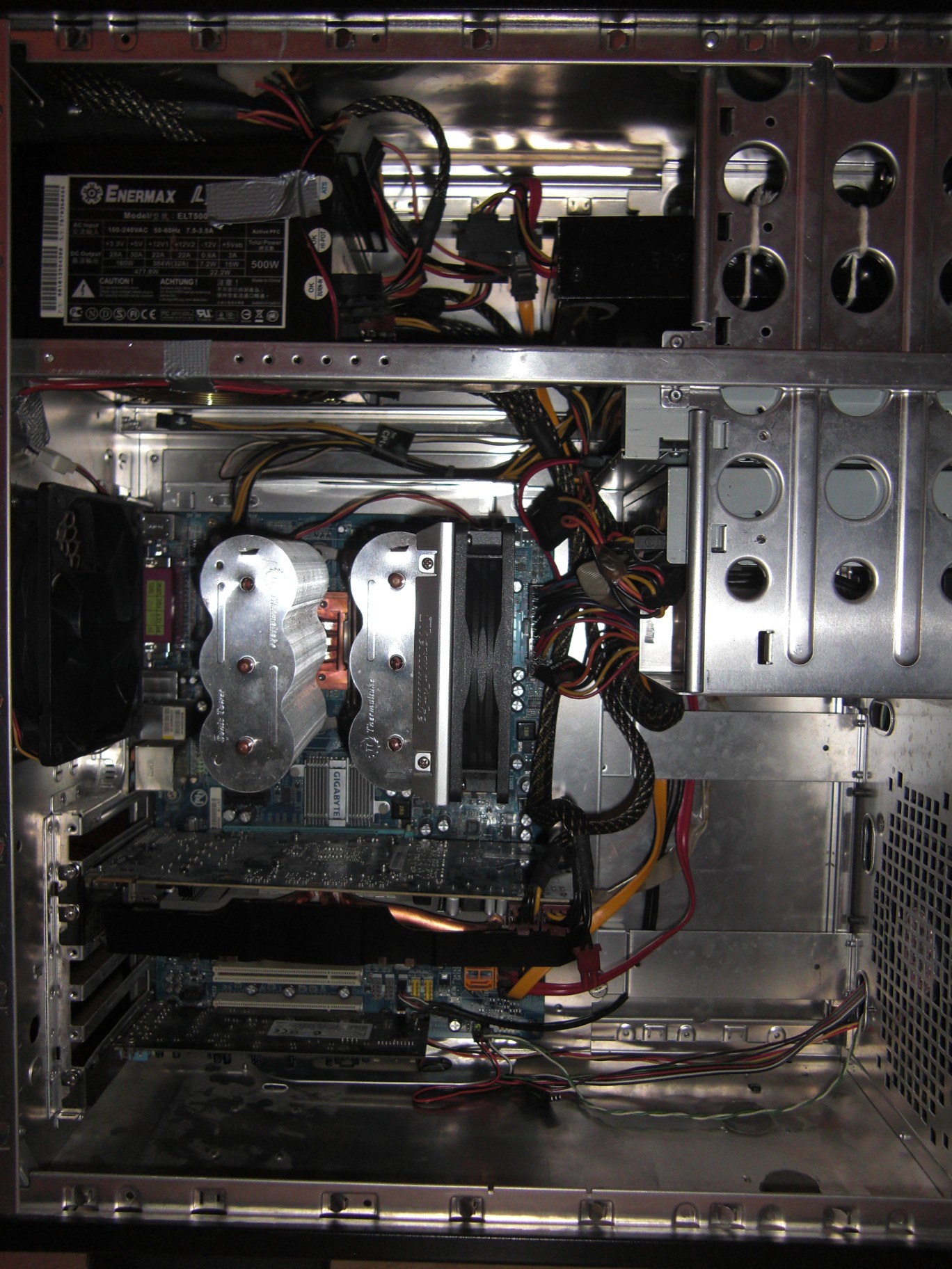 Von mir hat er das Gehäuse, 3 120mm Scythe Lüfter (1200er hinten, 800er vorne und 1200er auf dem CPU Kühler) und die Festplattendämmung geerbt.