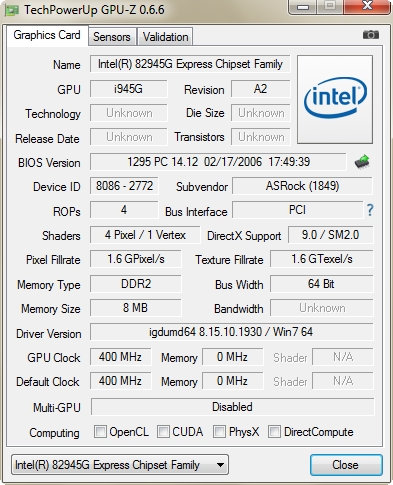 Motherboard Chipset: Intel 945G (Lakeport-G) + ICH7