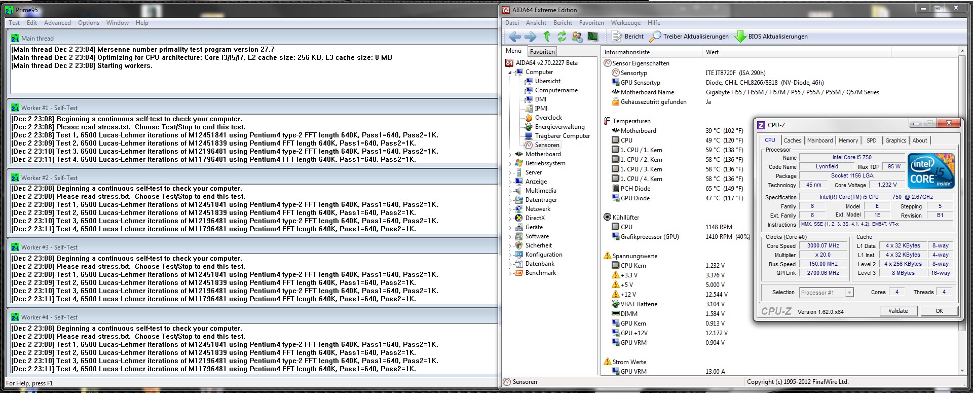 Daneben dann am besten AIDA64 laufen lassen und unter Computer->Sensoren die Temperaturen im Auge behalten. Für mich wären ~60°C das Maximum aber den alten Presskopf kannst du wohl auch bis 70°C laufen lassen. Wenn die Temperatur überschritten wird solltest du Prime beenden. !Wichtig sind nur die Kern Temperaturen!