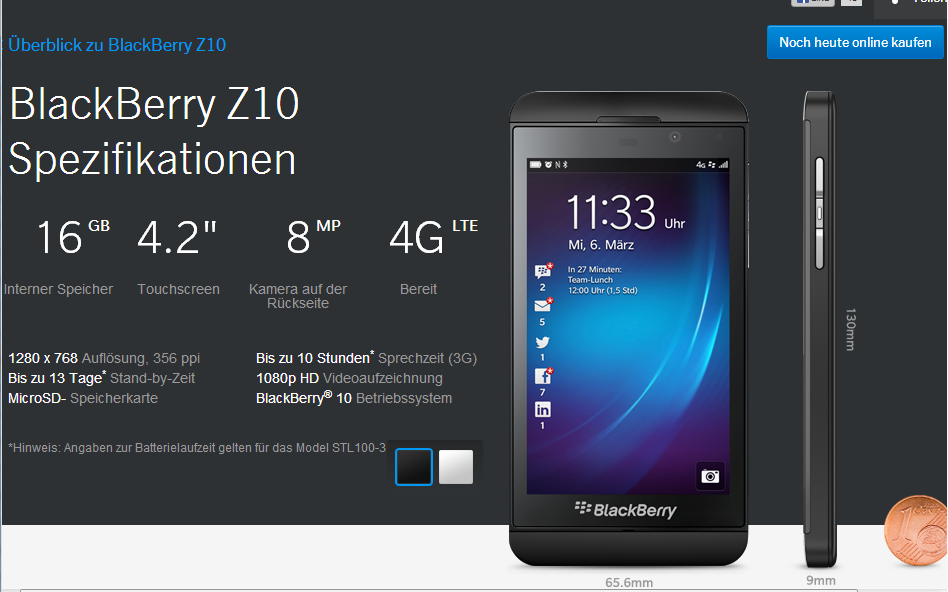 Blackberry Z10 High-End-Smartphone ab 480 Euro