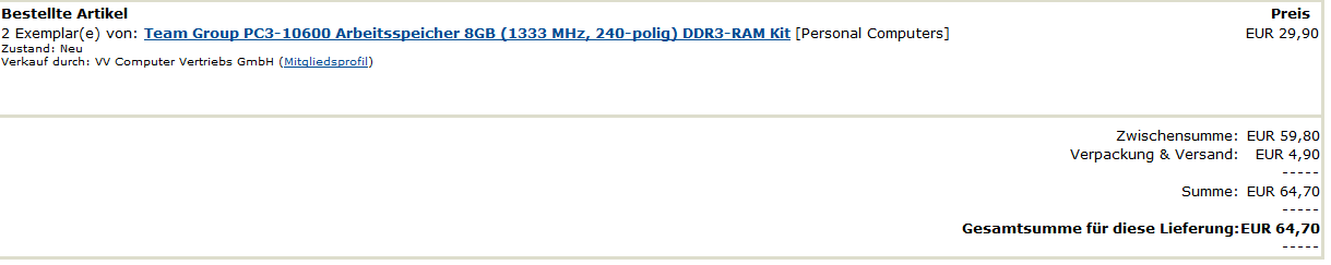 Aber mein Bekannter hätte für 8GB ca. 80 Euro gezahlt, von daher ist er mit 100,- Euro für 16GB ganz gut bedient denke ich.