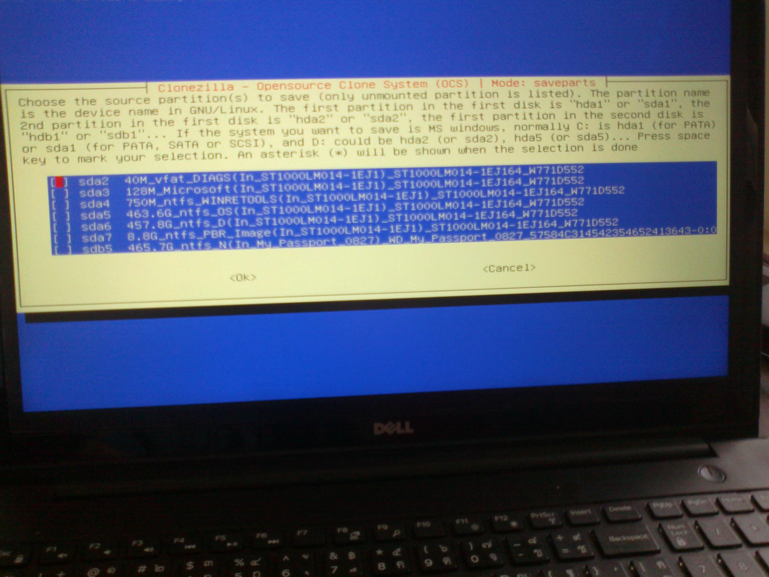 Wie gesagt, ich gehe bei dem Windows 8.1-gerät (Dell 5548) im kopf von der von mir selber für mein XP-notebook verwendeten version clonezilla-live-1.2.6-59-amd64 aus und versuche es im prinzip ebenso zu machen, auch wenn die version jetzt clonezilla-live-2.4.7-8-amd64 heisst und etwas verändert ist. Bei mir selber habe ich die von Clonezilla abgeladene zip-datei nach der ersten partition der externen festplatte extrahiert. In der werden auch die abbilder erzeugt und aufbewahrt.