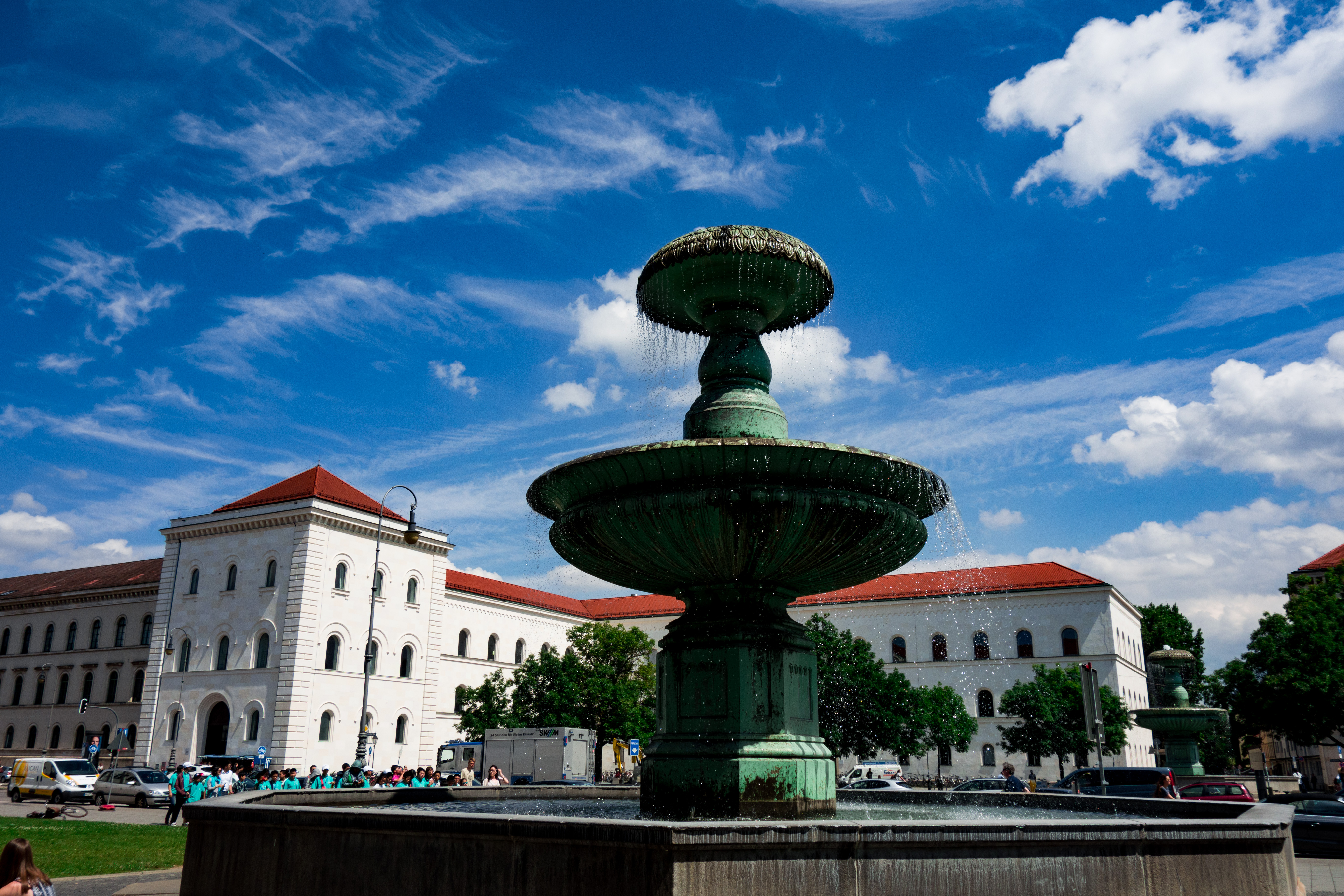 Beim ersten Bild wäre ich paar Schritte zurückgegangen (der Brunnen wäre ganz erfasst worden) oder hätte nicht soweit reingezoomt. Wenn das Hauptaugenmerk auf dem Brunnen liegen soll, dann könntest Du mal das Hochformat ausprobieren.
