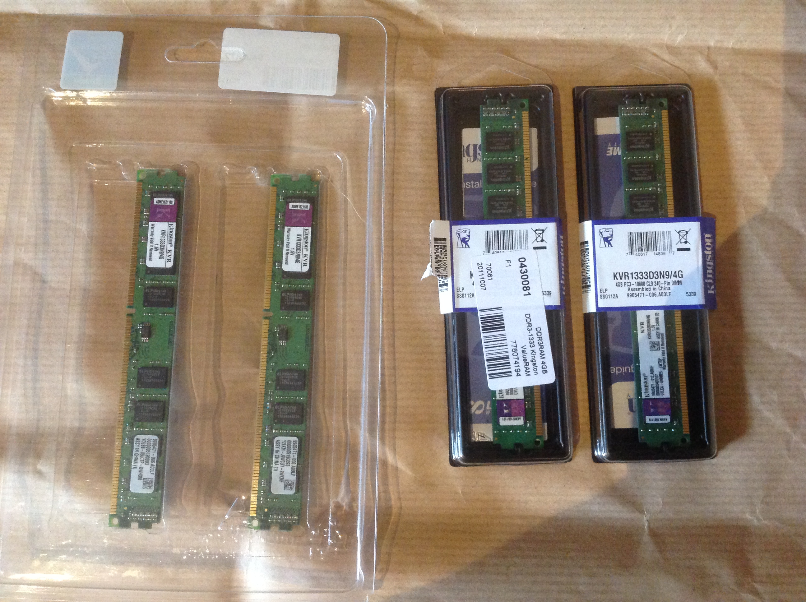 4x Kingston ValueRAM DIMM 4GB, DDR3-1333, CL9 (KVR1333D3N9/4G)