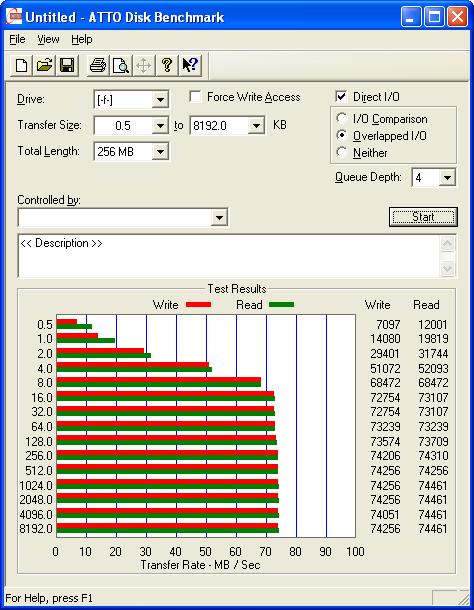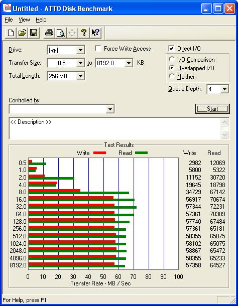 Hab ein XP mittels diesem Heise-Script RAID1-Fähig gemacht und ein RAID1 über zwei 80GB-Platten gezogen (Maxtor DiamondMax 20 / Seagate Barracuda ST380013AS). Daraufhin mit "Atto Disk Bench" Lese-/Schreib-Geschwindigkeit gemessen. Details in den angehängten Grafiken.