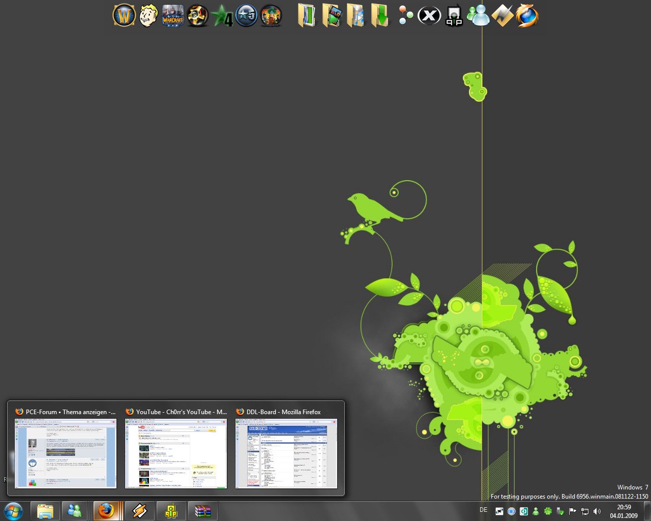 Was die Ressourcenauslastung angeht -> Grad eben zockt Win7 ca. 680mb, aber mit FireFox, QIP, MSN, xFire, Winamp etc...