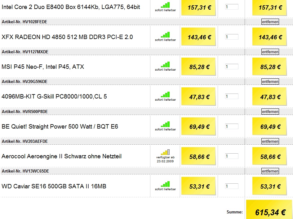 Hier mein Vorschlag, die Preise kommen von mindfactory.de: