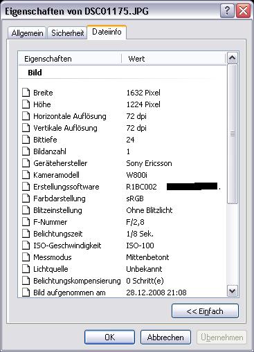 hm bei mir unter WinXp reichts vollkommen wenn ihc rechte maustaste-eigenschaften-Dateiinfo-Erweitert>> klicke