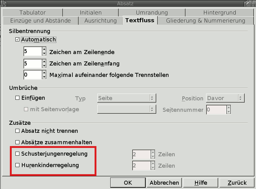 Mal im ernst: was ist denn ein H u r e n kinderschalter? Ich konnte es kaum glauben, als ich diese Option in Openoffice 3 gefunden habe. In der Hilfe ist folgendes zu lesen: