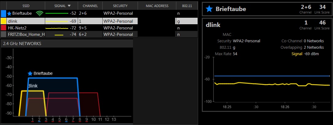 Außerdem haben wir auch ein merkwürdiges Verhalten eines Nachbarnetzes gesehen in inSSIDer.