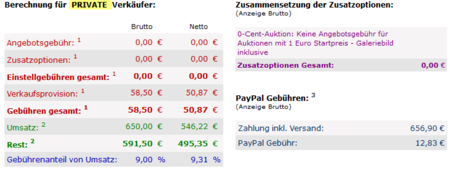 naja 450 sind etwas übertrieben, aber 77€ gebühren finde ich dennoch sehr hoch für einen vk von 650. ich habe beschlossen abstand von ebay als vk zu nehmen.