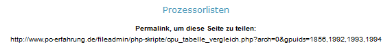 In der ersten Version ist es möglich, innerhalb der Prozessorliste eines Herstellers gezielt nach bestimmten Prozessoren zu filtern und diese anschließend in einer übersichtlichen Tabelle miteineinander zu vergleichen. Mithilfe eines so genannten Permalinks ist es ebenfalls möglich, den Prozessor-Vergleich mit anderen zu teilen oder auf anderen Webseiten zu verlinken. Am besten ihr probiert die Vergleichsfunktion direkt aus. Anregungen und Kritiken sind wie immer gerne erwünscht.