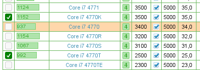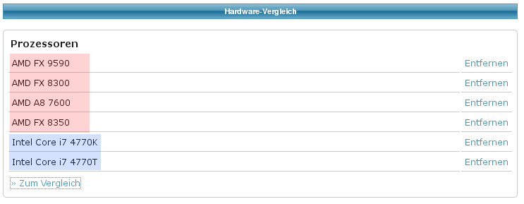 Prozessorlisten nun mit Vergleichsfunktion