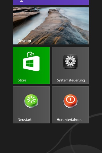 Für das Neustarten, für das Herunterfahren und für die Systemsteurung habe ich mir Kacheln angelegt, sieht aus wie von Windows gewollt finde ich: