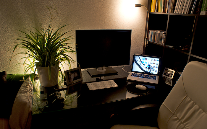 Dann halt nochmal mein Schreibtisch in gemütlicher Abendstimmung